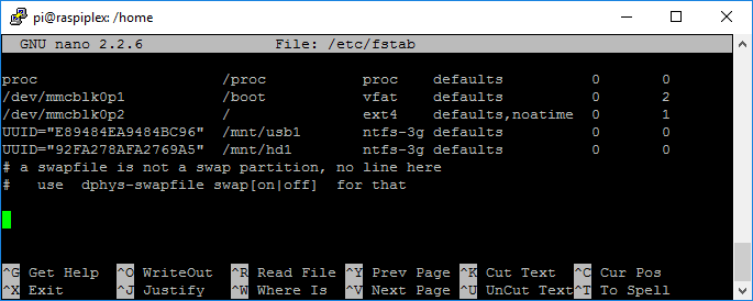 sudo nano /etc/fstab